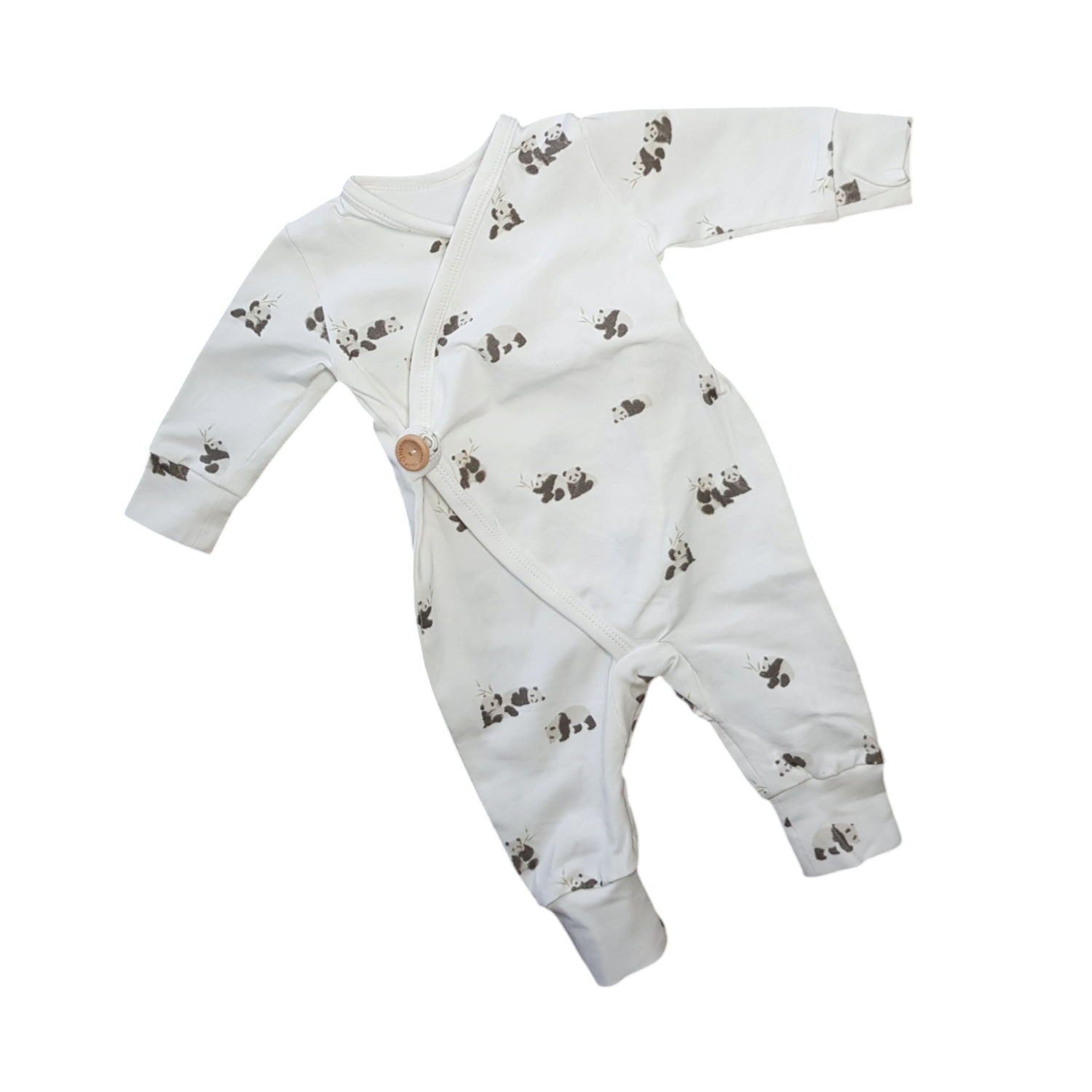 Wat zou dit boxpakje toch prachtig zijn voor je kindje! Heel makkelijk aan en uit te doen door de enkele sluiting met een knoop en één drukknoopje aan de binnenkant. Zacht en comfortabel, crèmewit met een print van panda’s in maat 50.