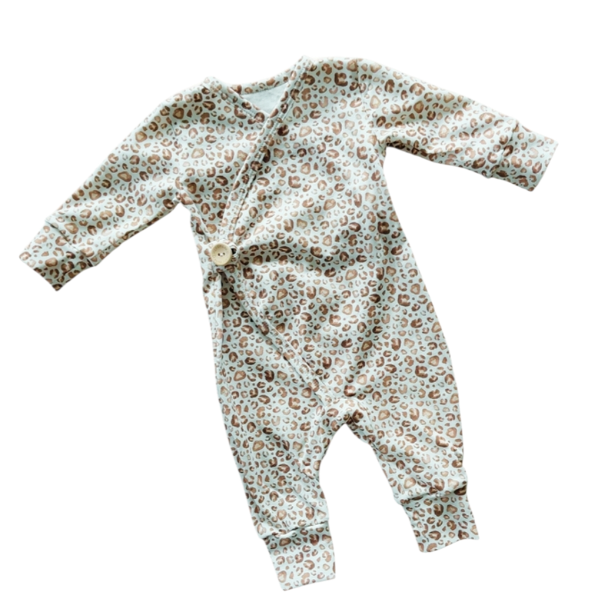 Wat zou dit boxpakje toch prachtig zijn voor je kindje! Heel makkelijk aan en uit te doen door de enkele sluiting met een knoop en één drukknoopje aan de binnenkant. Zacht en comfortabel, crèmewit met een hippe panterprint in maat 50.